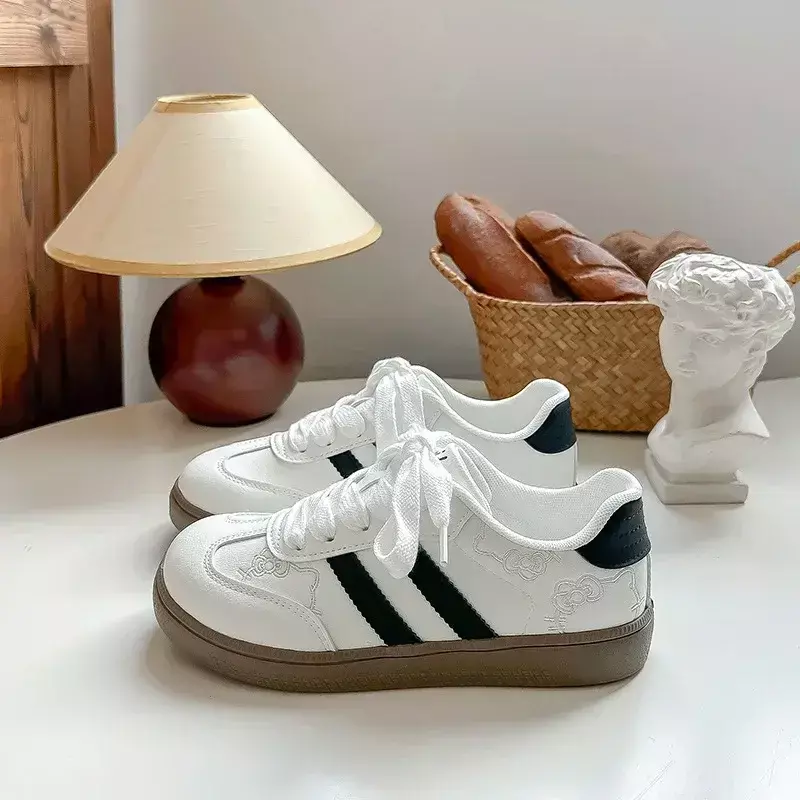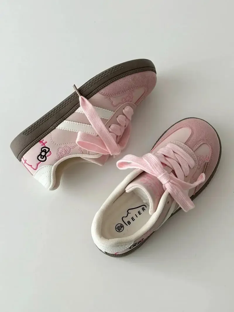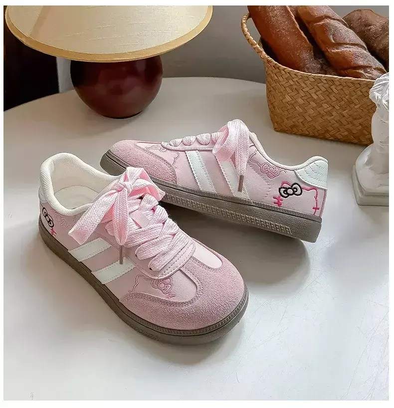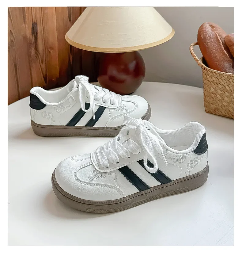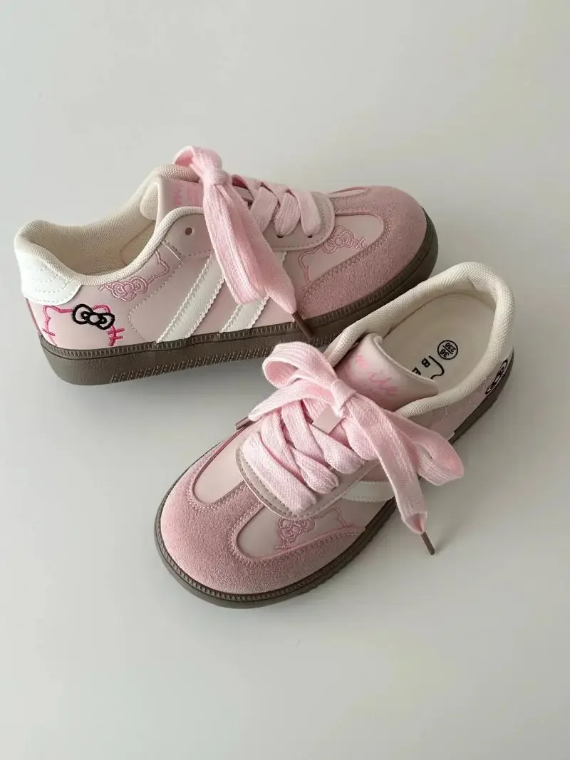 Hello Kitty meninas mocassins grossos bonitos sapatos de plataforma de cabeça grande tênis casuais sapatos de treinamento da moda para escola e uso casual